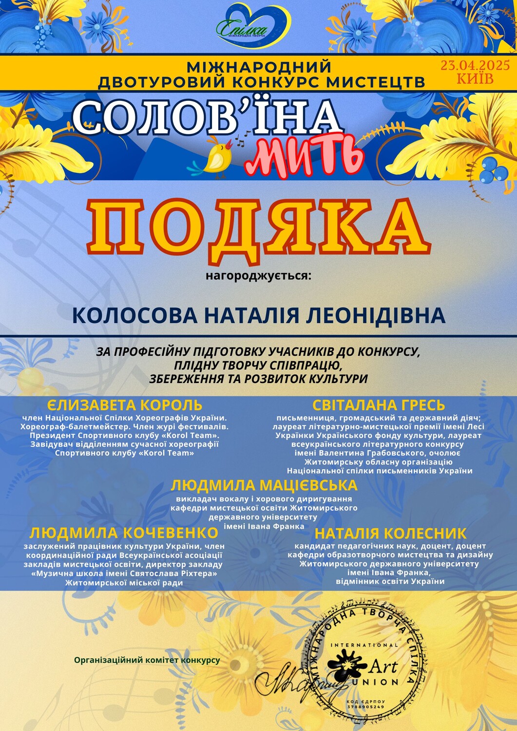 Кваліфікаційна категорія: спеціаліст вищої категорії